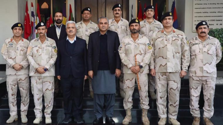 ڈائریکٹر جنرل اے این ایف میجر جنرل عبد المعید، ہلال امتیاز (ملٹری) نے وفاقی وزیر داخلہ محسن نقوی کا استقبال کیا۔