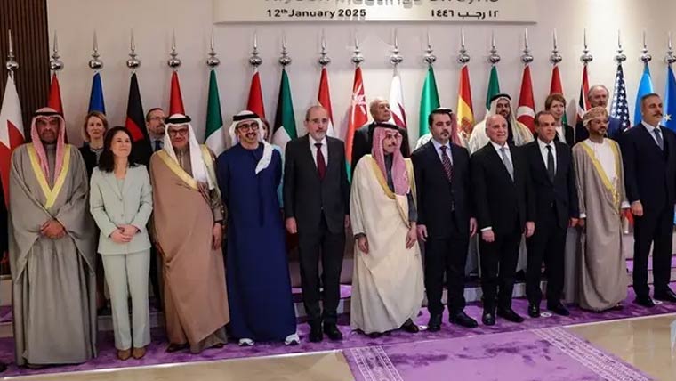 اجلاس کی صدارت سعودی وزیر خارجہ شہزادہ فیصل بن فرحان اور شام کے عبوری وزیر خارجہ اسعد الشیبانی نے کی، مشرق وسطیٰ اور یورپی ملکوں کے اعلیٰ سفارتکاروں نے اس میں شرکت کی جبکہ ترکیہ کے وزیر خارجہ خاقان فیضان بھی بعد ازاں اس کا حصہ بنے۔