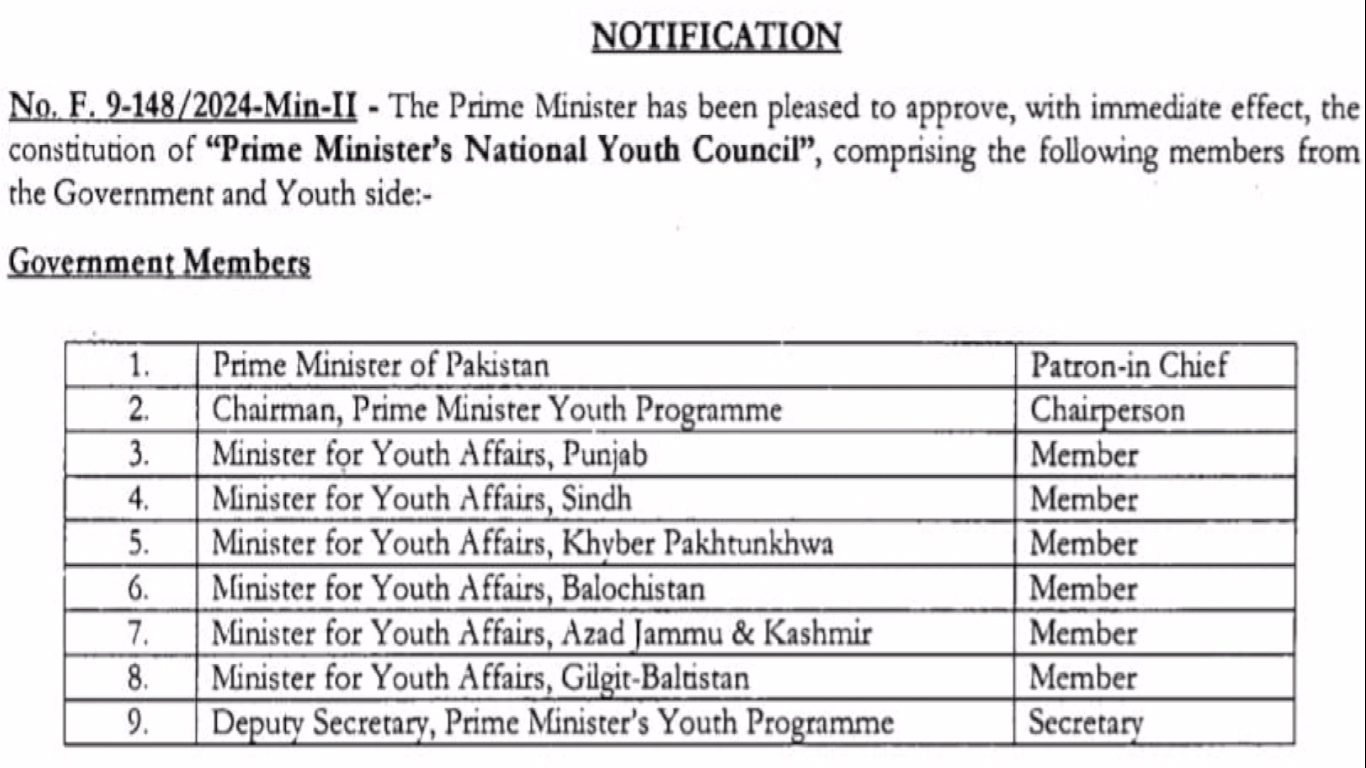 اسلام آباد: (دنیا نیوز) وزیراعظم شہباز شریف کی ہدایت پر پرائم منسٹر یوتھ کونسل کی تشکیل دے دی گئی۔